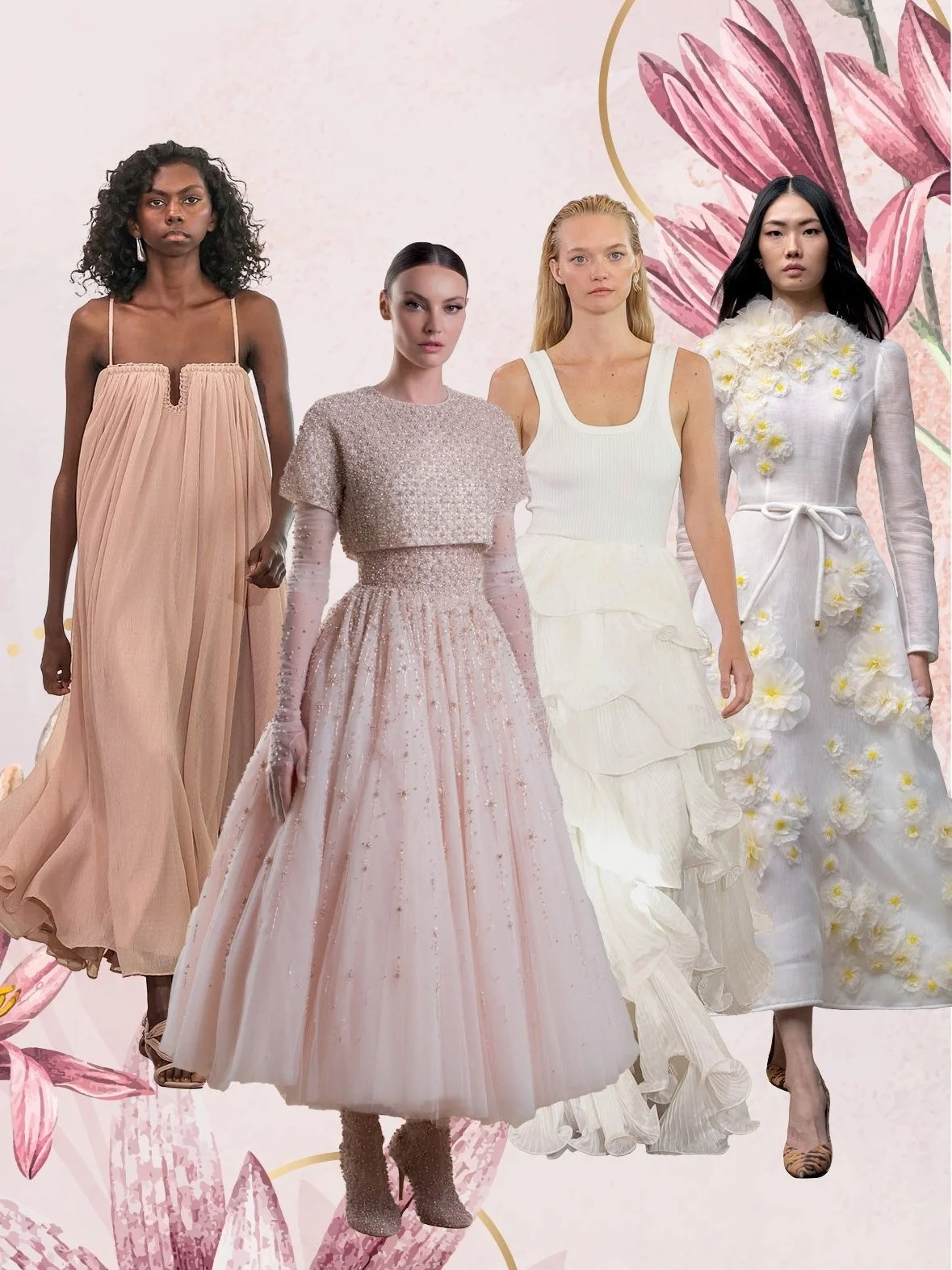 (Left to right) Aje Resort ’24 ‘Element’ Collection; Paolo Sebastian A/W ‘23/’24 Haute Couture Collection; Aje Resort ’24 ‘Element’ Collection; Zimmerman Resort 2024 Collection.
