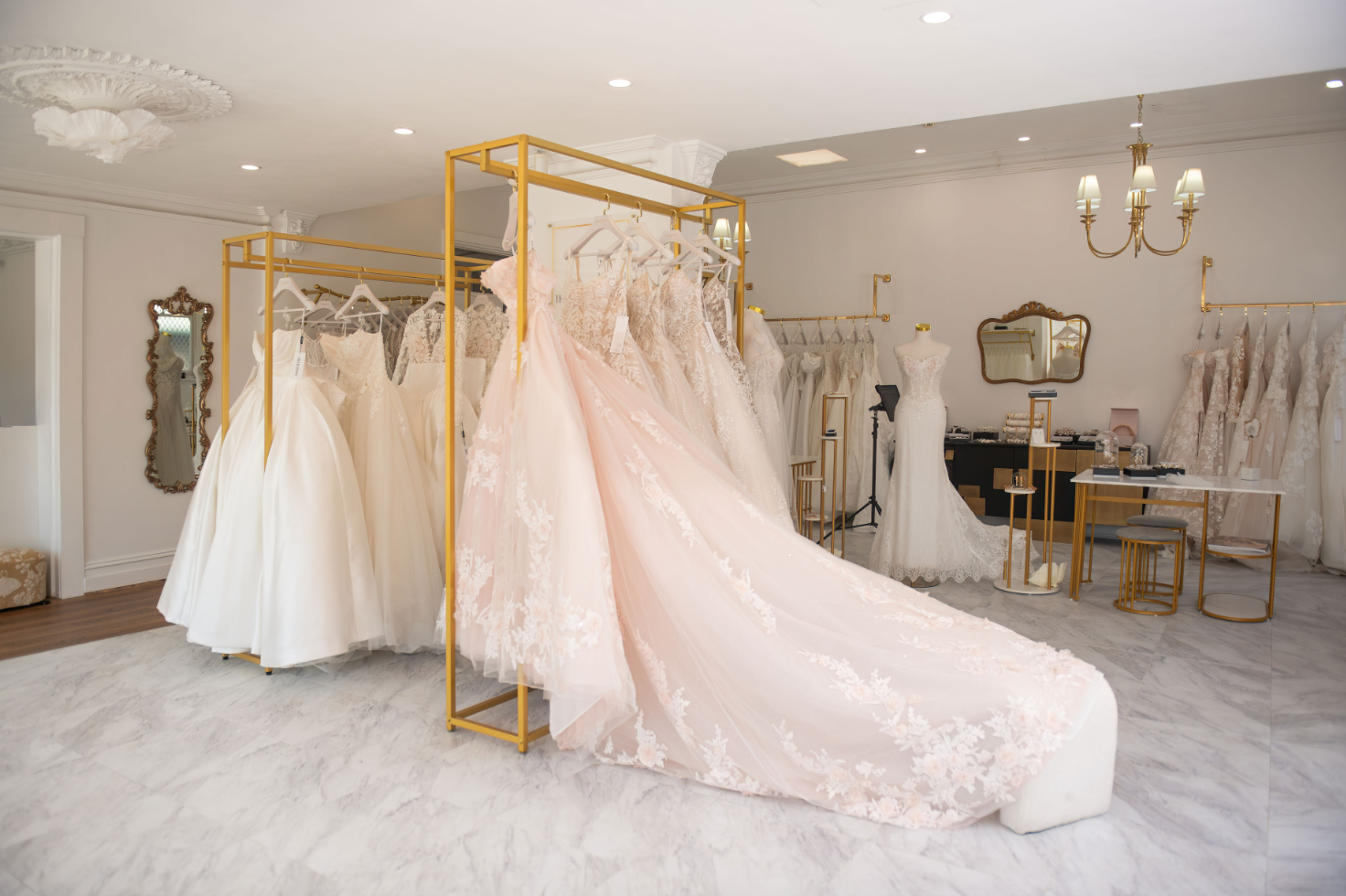 Once you’re in the store, expect large, individual changerooms for privacy, and a curated selection based on your style, personality, and vision. Difficult to decide? The stylists know their designers inside and out and will gladly guide you through their options without overwhelming you. You’ll also discover their in-house alteration services a part of the store’s offering. “You will not leave our store until your gown is fitted perfectly,” says Bianca.