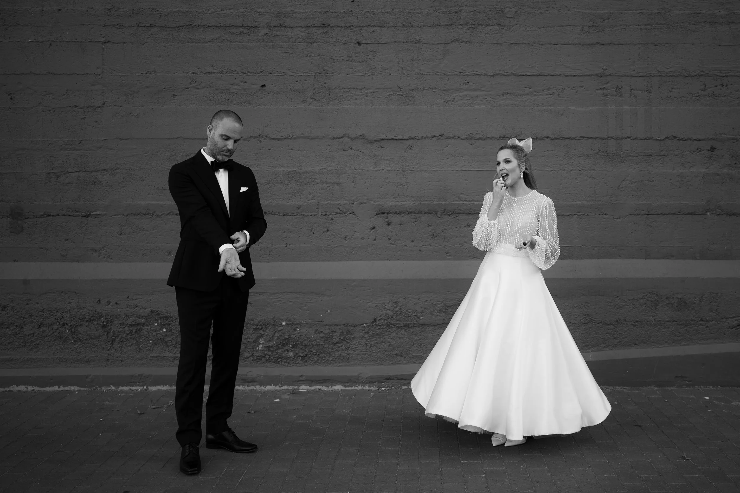 The Dress: I wore a top and skirt. The top was by Catherine Deane, purchased from The Bride Lab. I changed my mind about the skirt I had purchased a week before the wedding and found an incredible Costarellos skirt online. There was only one size left, so I ordered it and crossed my fingers. It arrived from Spain in time and fit like a glove. In my hair, I decided to incorporate a silk bow from Lelet, New York - I love the look of all three elements together.
